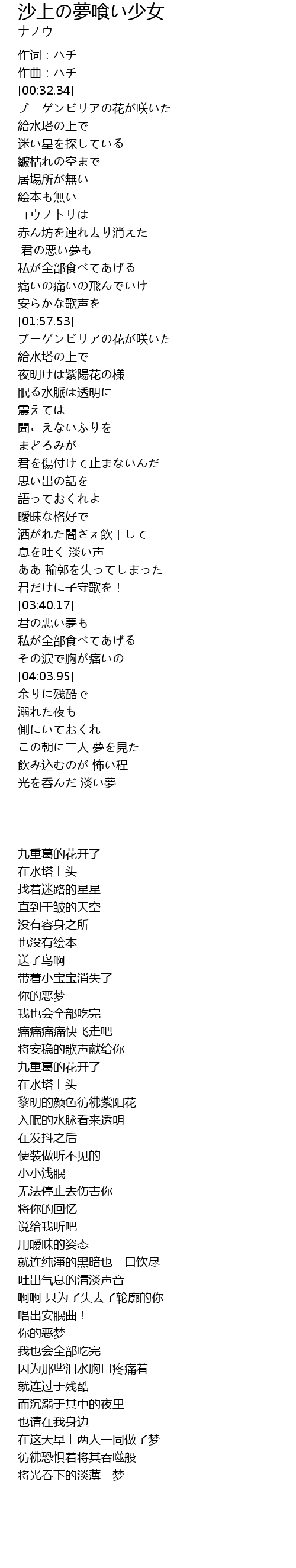 作词:ハチ |