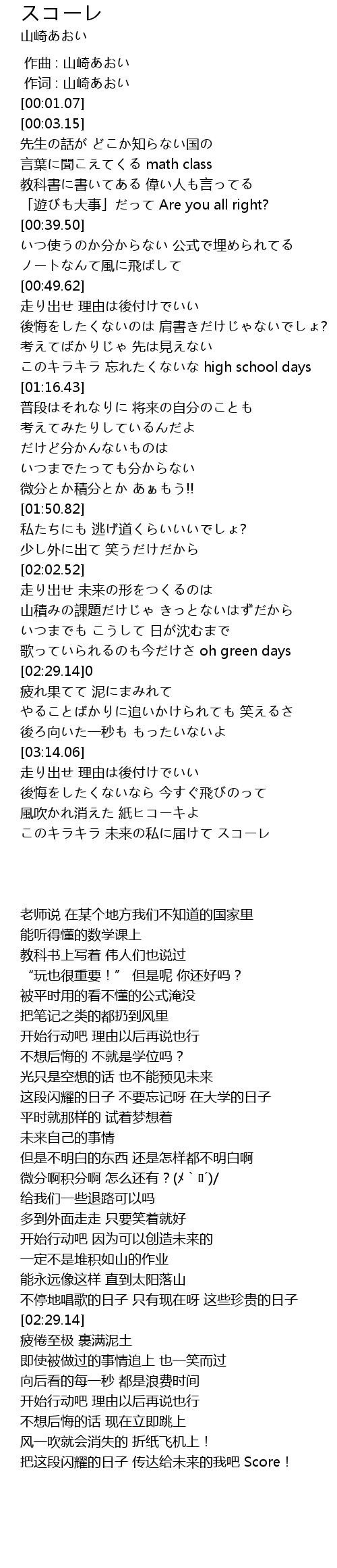 | [00:00.335] | 作词 : 山崎あおい |
