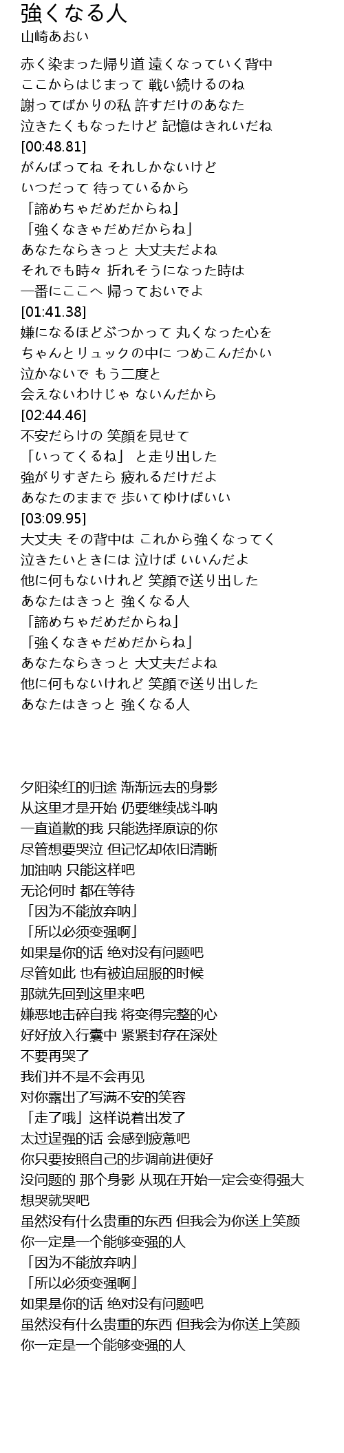 | [03:54.37] | あなたはきっと 強くなる人 |