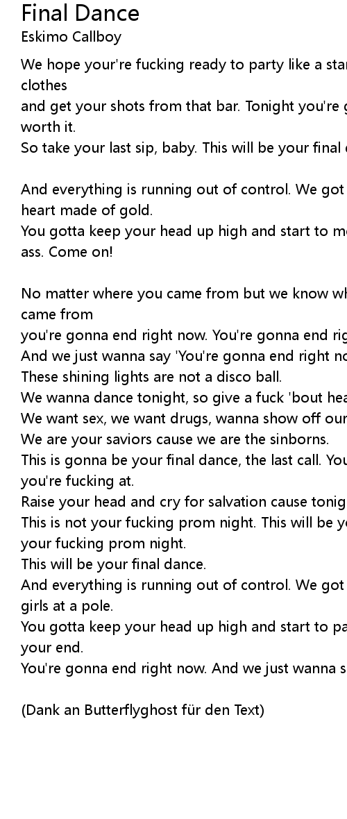| This will be your final dance. | |