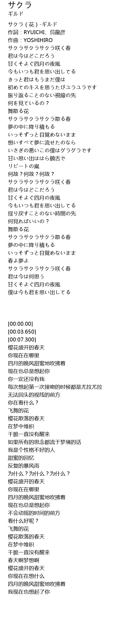 | [00:00.00] | サクラ(花)-ギルド |
