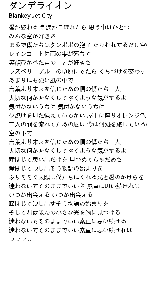 | まるで僕たちはタンポポの胞子 たわむれてるだけ空の下で | |