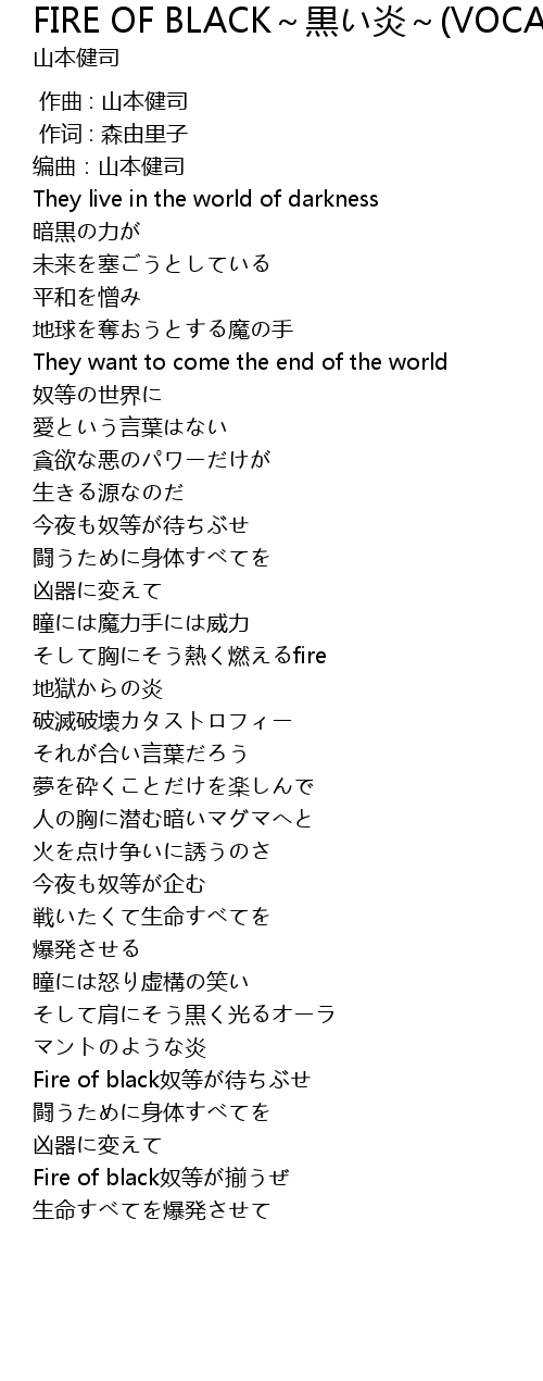 | Song | FIRE OF BLACK~黒い炎~(VOCAL VERSION) |