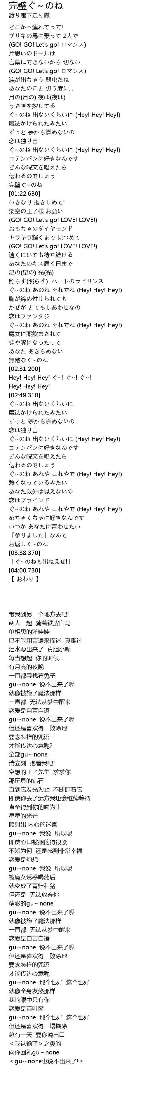 | [01:35.630] | GO! GO! Let' s go! LOVE! LOVE! |