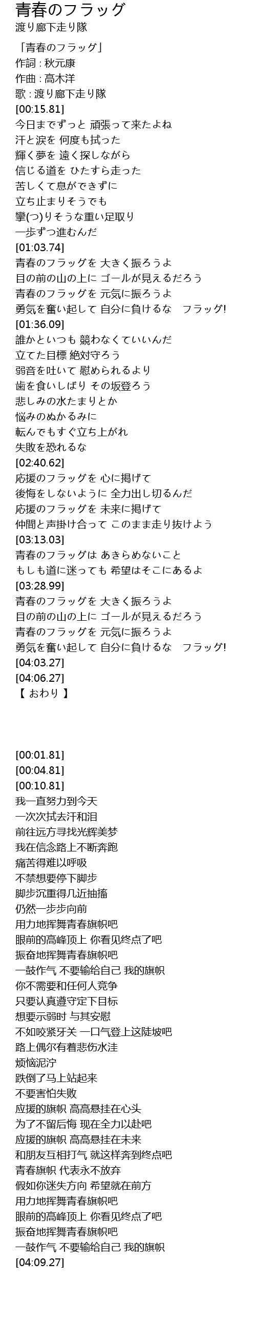| [00:01.81] | 「青春のフラッグ」 |