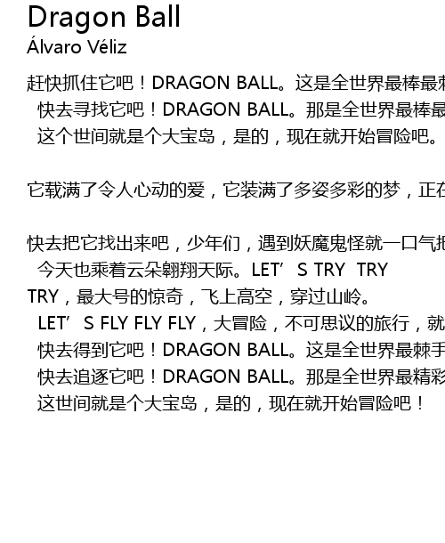| kuài qù zhuī zhú tā ba! DRAGON BALL. nà shi quán shì jiè zuì jīng cǎi de yī chǎng xì. | |