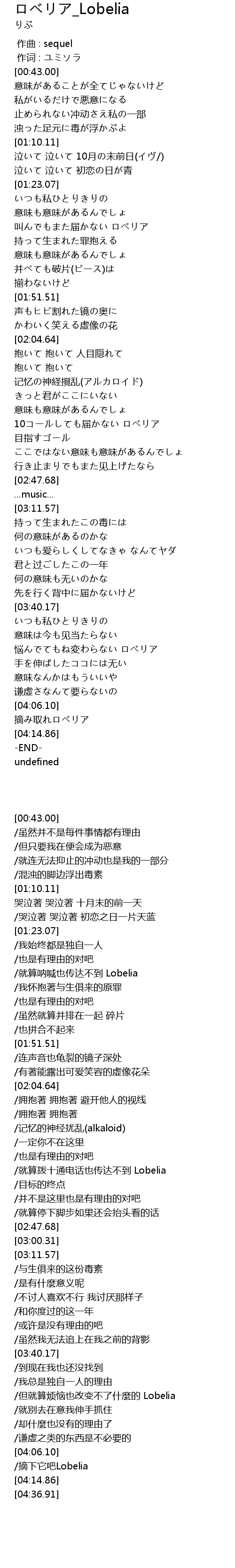 | [01:30.75] | 叫んでもまた届かない ロベリア |