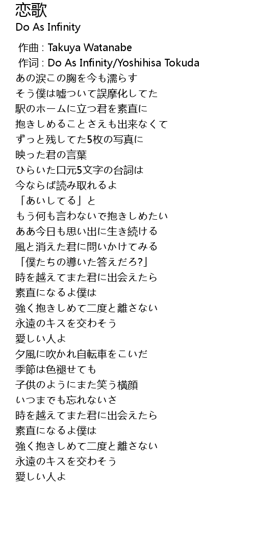 | [00:01.00] | zuò cí : Do As Infinity Yoshihisa Tokuda |