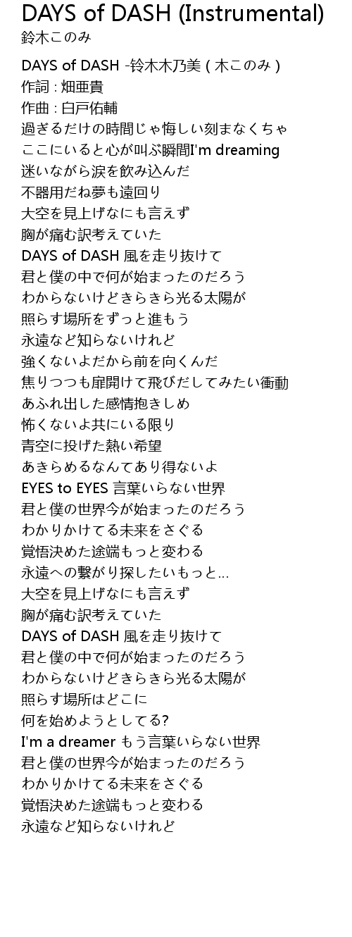 | [00:00.00] | DAYS of DASH -铃木木乃美(木このみ) |