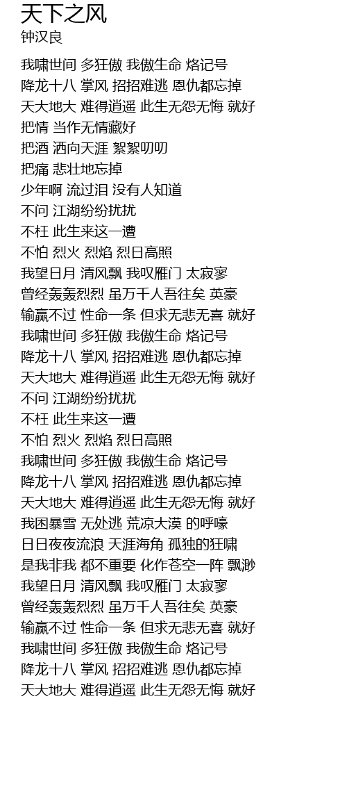 | Song | 天下之风 |