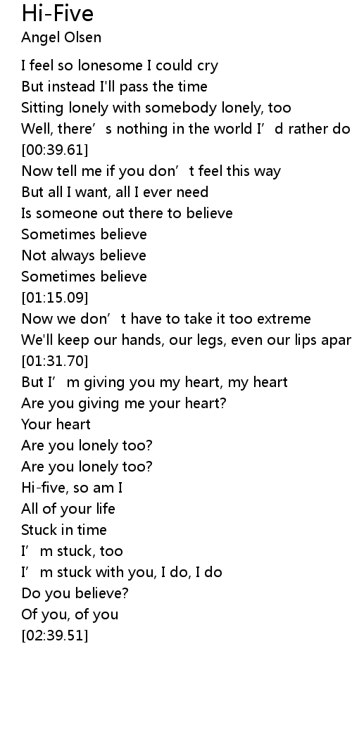 | [00:24.10] | Sitting lonely with somebody lonely, too |