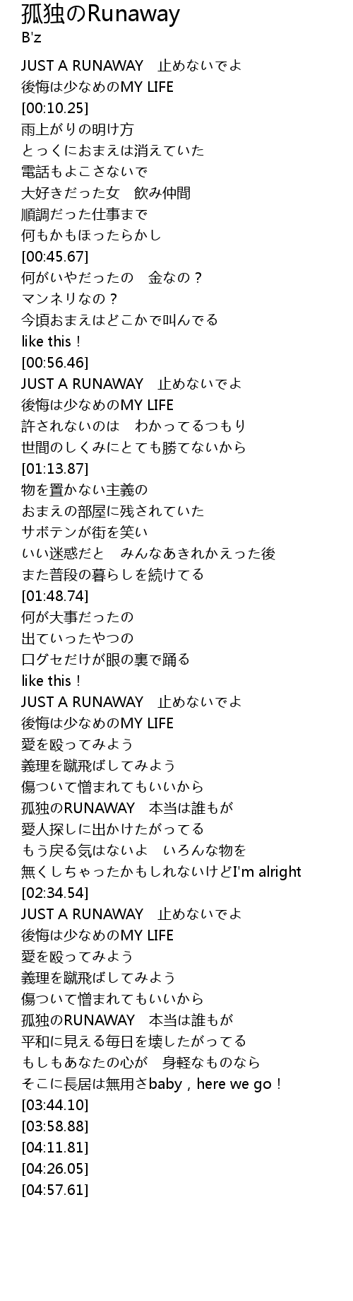 | [01:59.56] | JUST A RUNAWAY 止めないでよ |