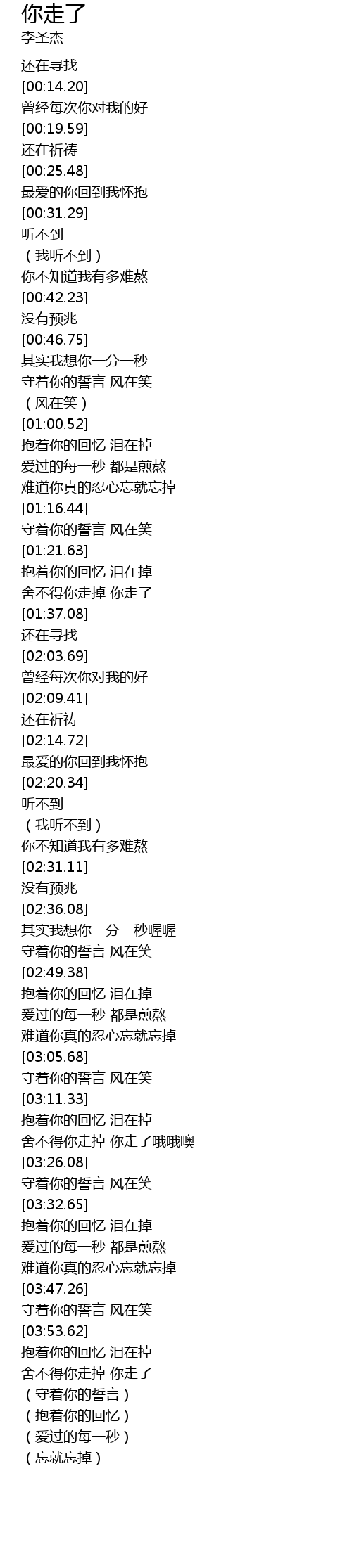 | [03:57.90] | shě bù dé nǐ zǒu diào nǐ zǒu le |