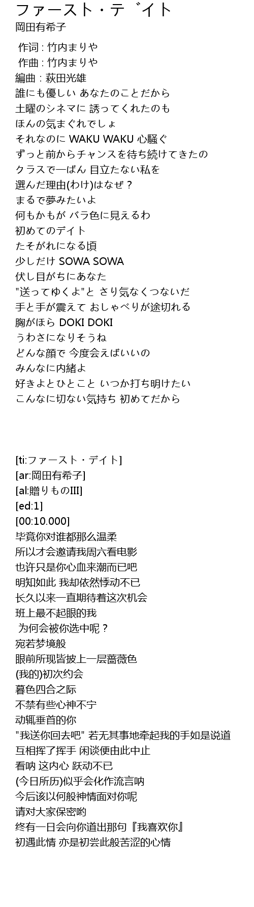 | [02:22.191] | 好きよとひとこと いつか打ち明けたい |