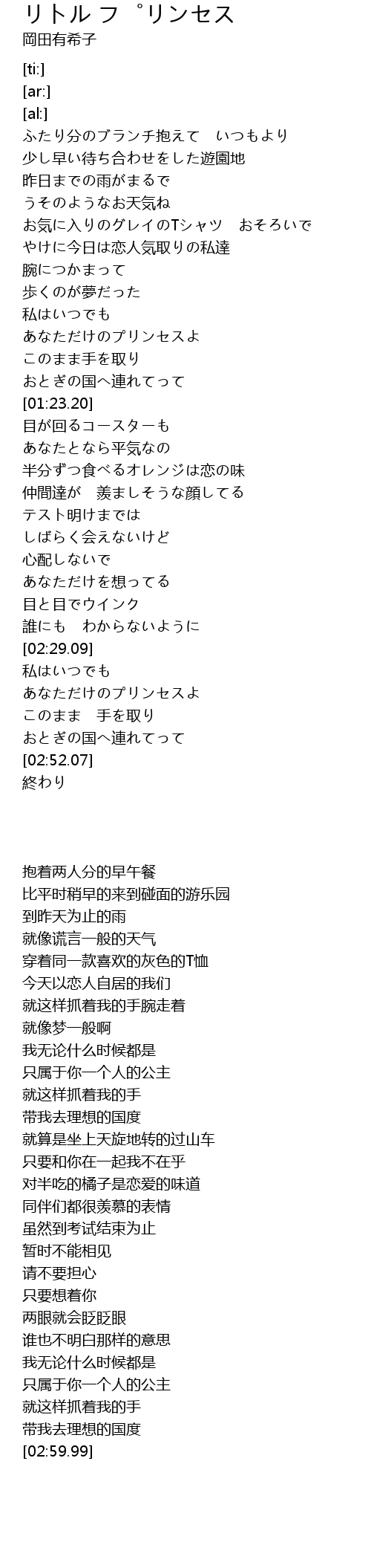 | [02:36.57] | あなただけのプリンセスよ |