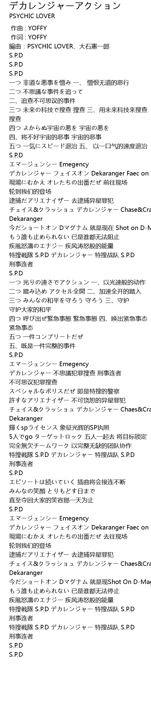 | [01:35:00] | tè sōu zhàn duì S. P. D tè sōu zhàn duì S. P. D xíng shì lián zhě |