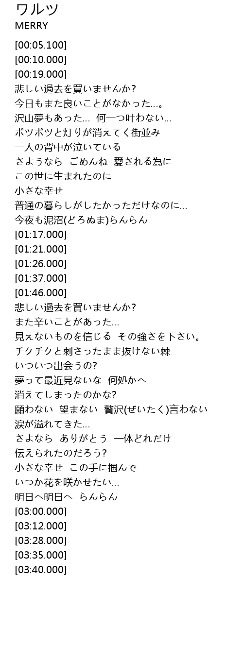 | [01:49.000] | 悲しい過去を買いませんか? また辛いことがあった… |