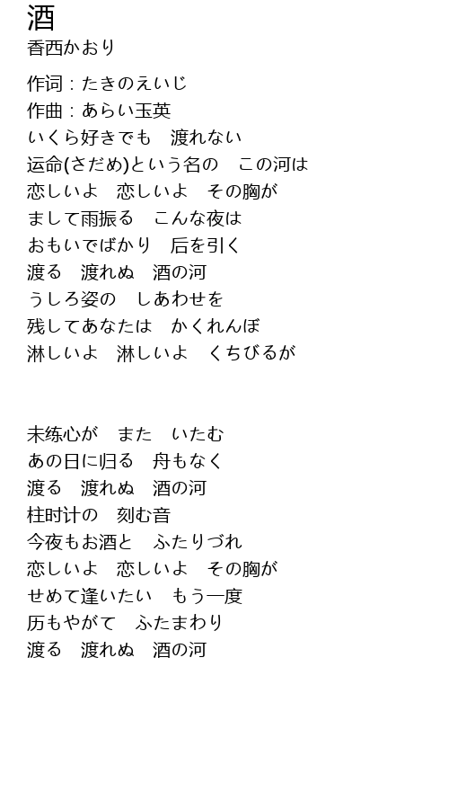 渡る 渡れぬ 酒の河 |