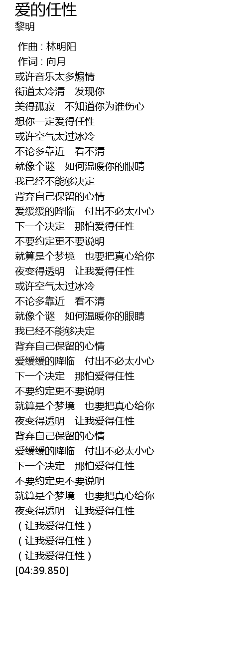 | [04:00.950] | 夜变得透明 让我爱得任性 |