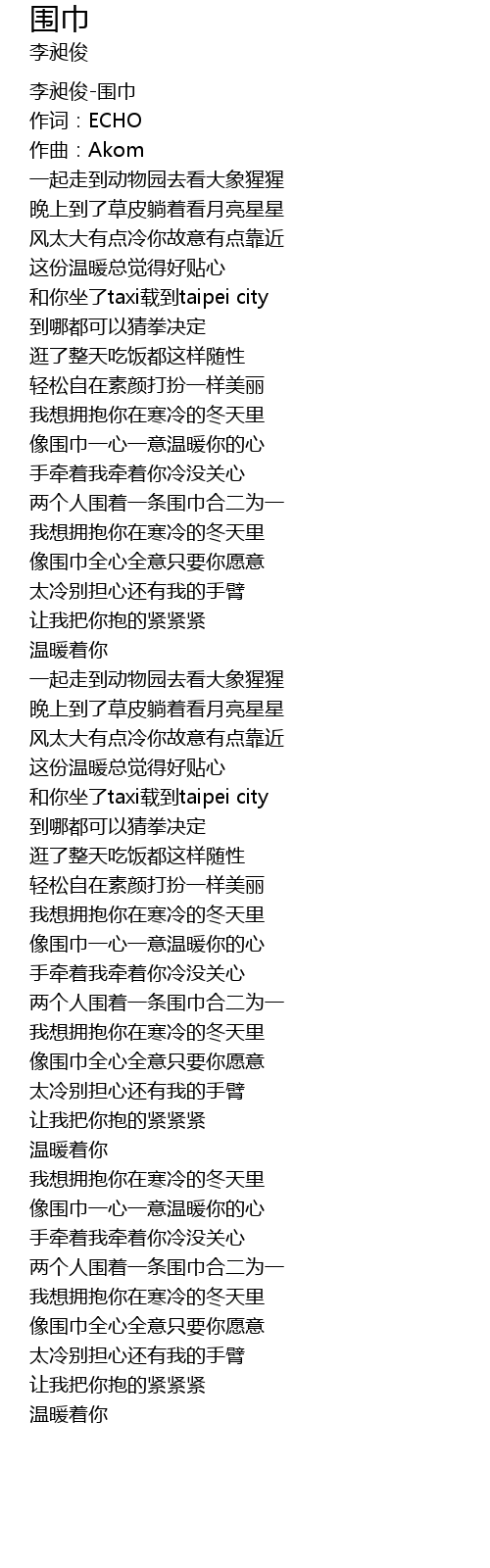 | [03:21.242] | 像围巾全心全意只要你愿意 |
