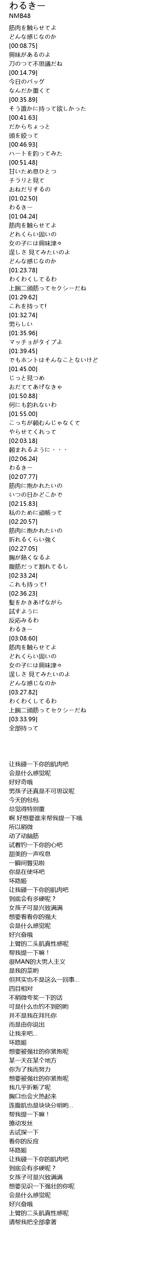 | [01:06.43] | 筋肉を触らせてよ |