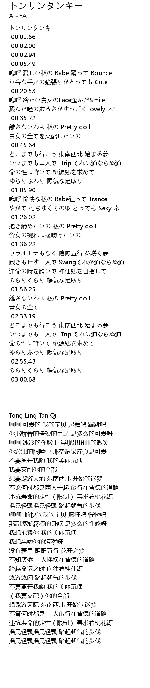 | [00:10.53] | 鳴呼 愛しい私の Babe 踊って Bounce |