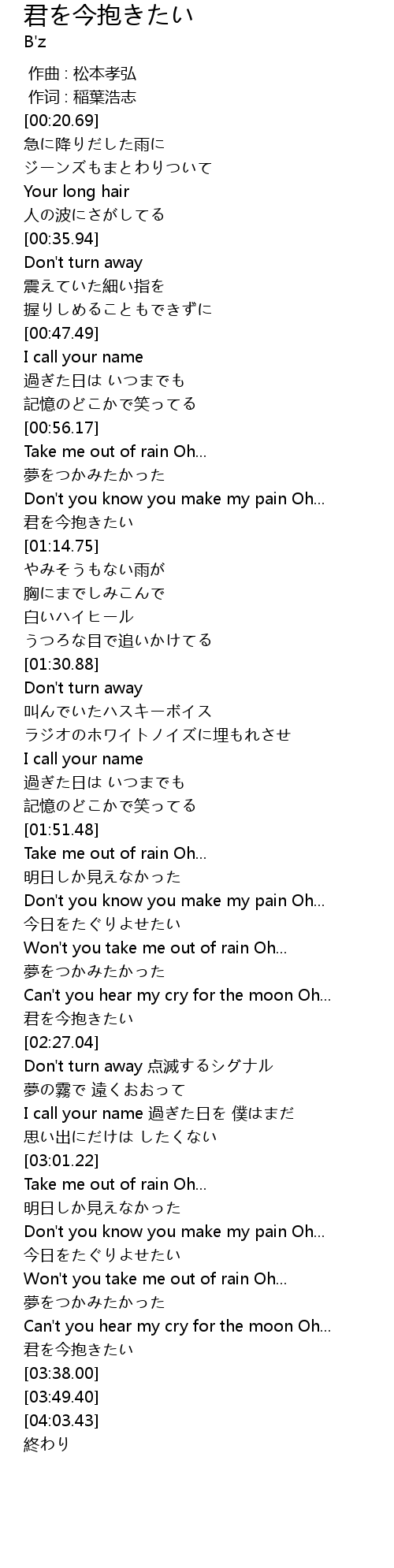| [03:32.95] | 君を今抱きたい |