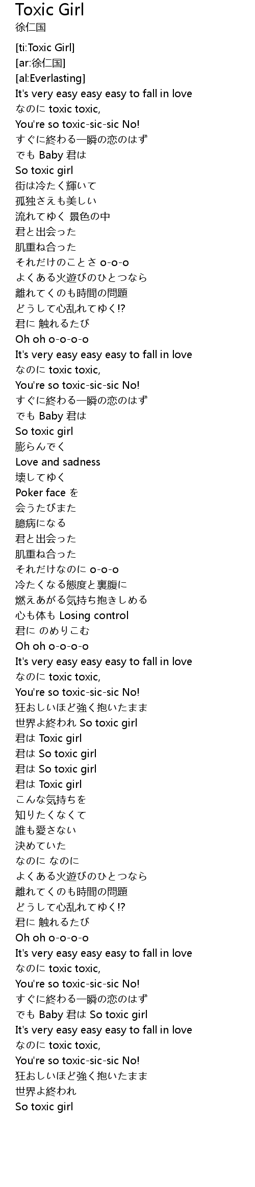 | [00:06.69] | You're so toxic-sic-sic No! |