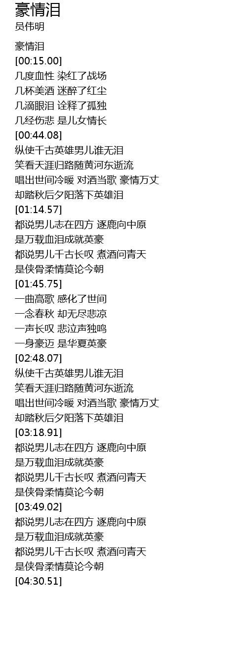 | [00:45.82] | 纵使千古英雄男儿谁无泪 |