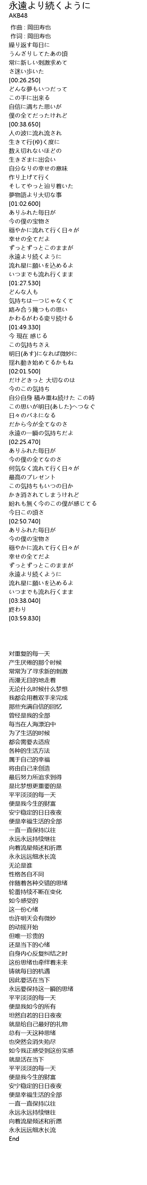 | [02:22.400] | 永遠の一瞬の気持ちだよ |