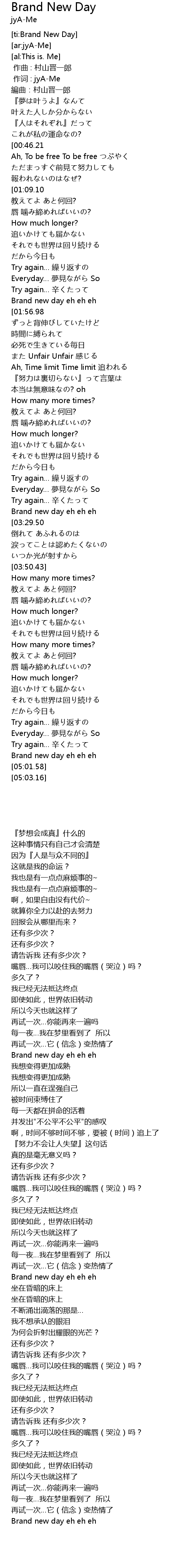| [04:55.98] | Brand new day eh eh eh |