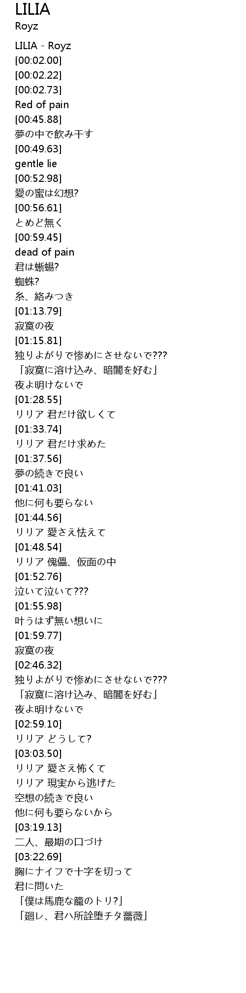 | [00:00.53] | LILIA - Royz |