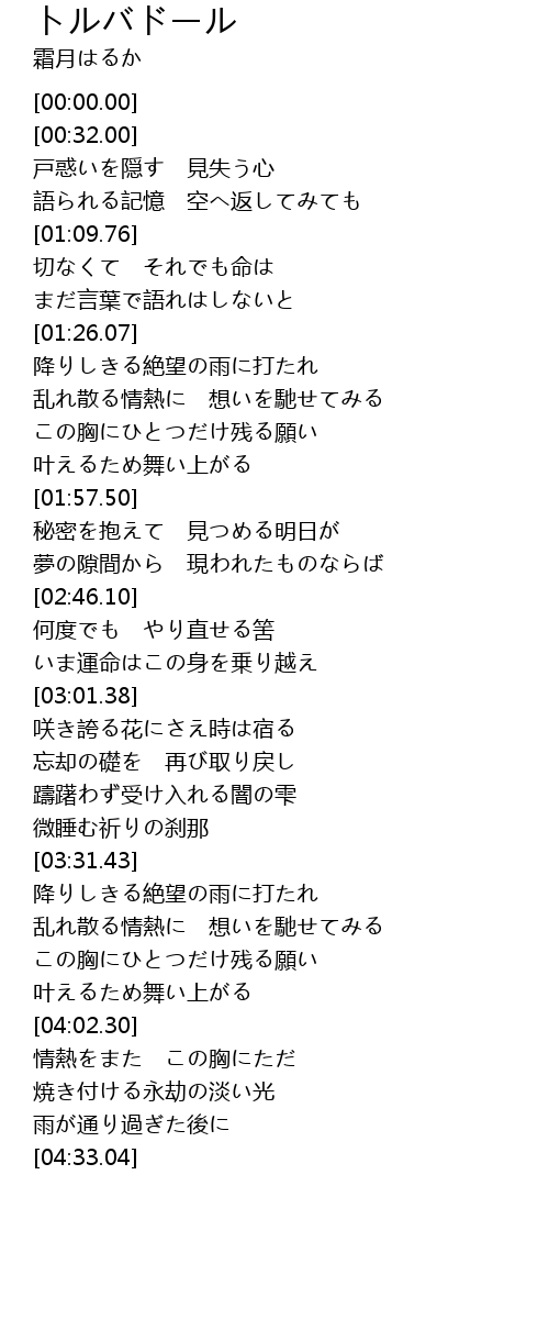 | [03:40.11] | 乱れ散る情熱に 想いを馳せてみる |