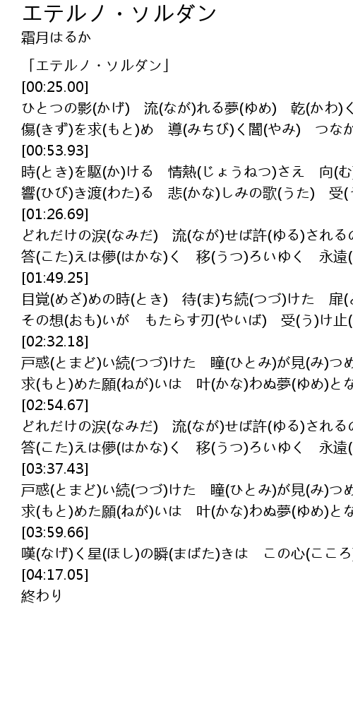 | [00:00.00] | 「エテルノ・ソルダン」 |