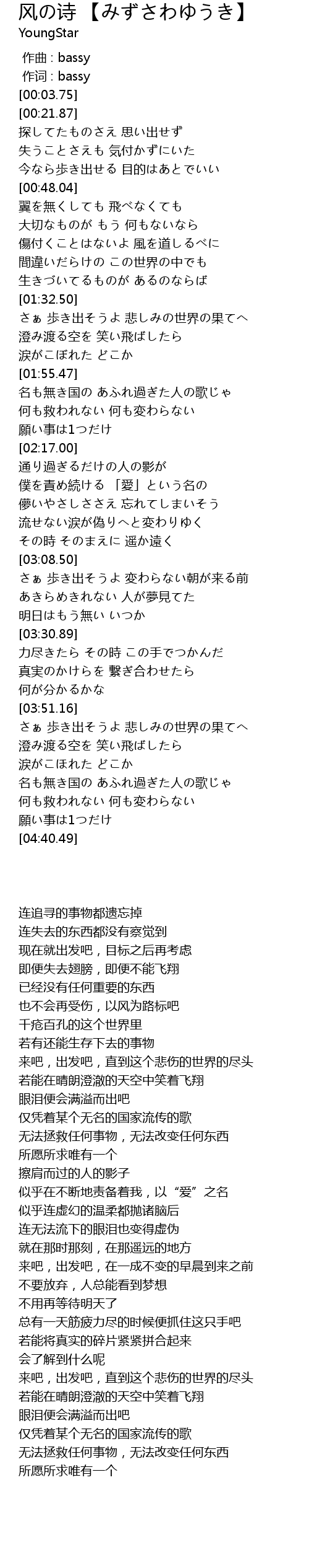 | [04:14.44] | 名も無き国の あふれ過ぎた人の歌じゃ |