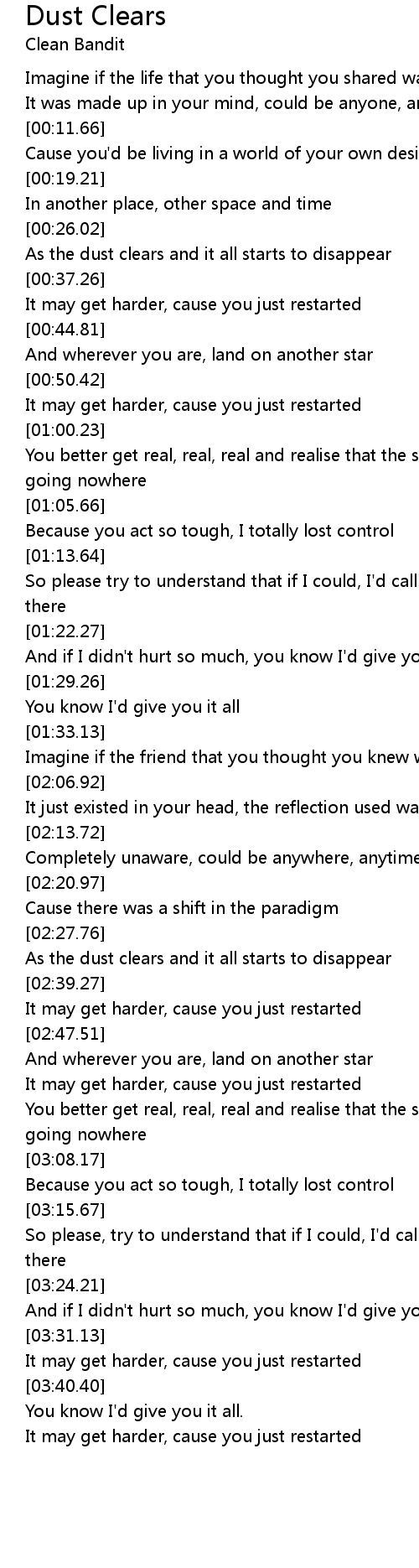Dust Clears Lyrics