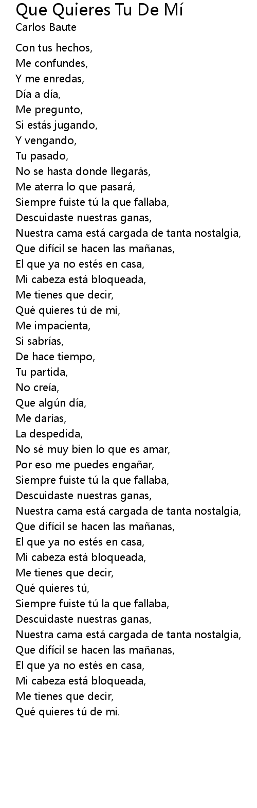 | Qué quieres tú de mi, | |
