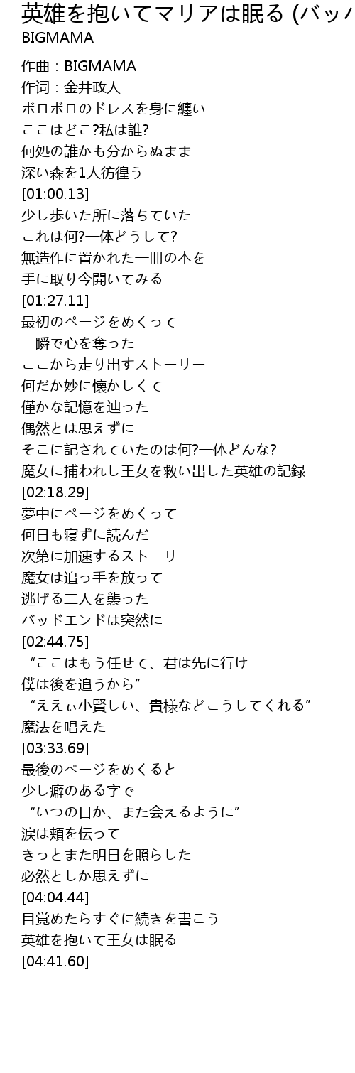 | [04:34.44] | 英雄を抱いて王女は眠る |