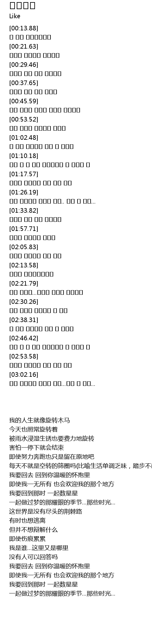 | [00:18.30] | 내 삶은 회전목마처럼 |