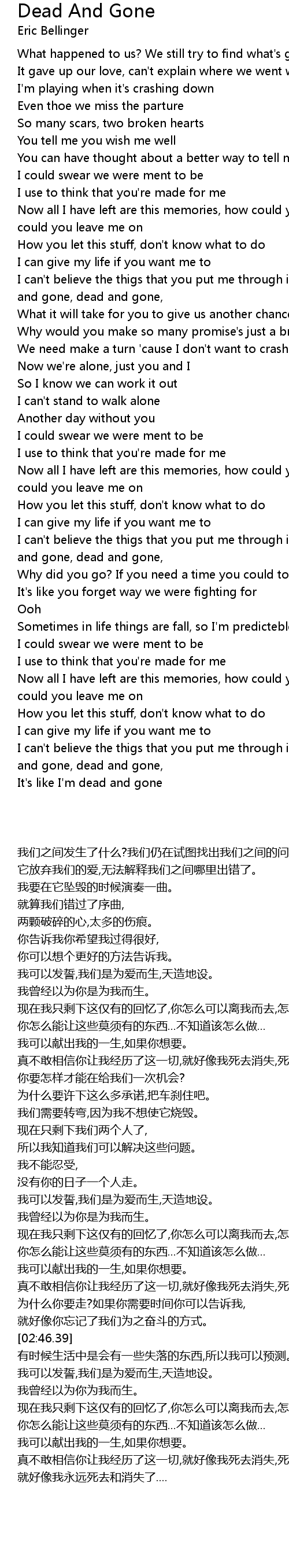I can't believe the thigs that you put me through it's like i'm dead and gone, dead and gone, |