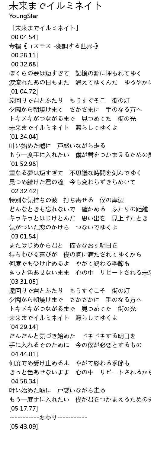 | [04:22.47] | 未来までイルミネイト 照らしてゆくよ |