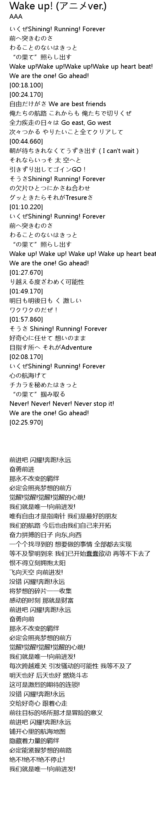 | [01:59.050] | Shining! Running! Forever |