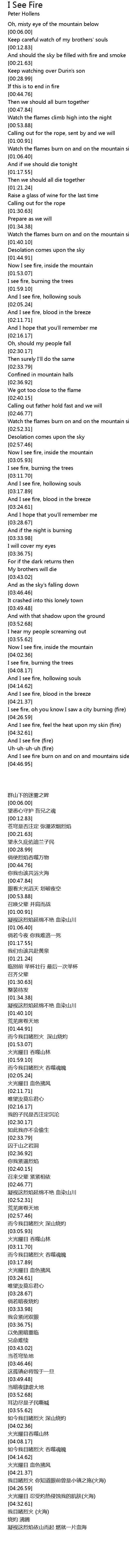 And I see fire burn on and on and mountains side |