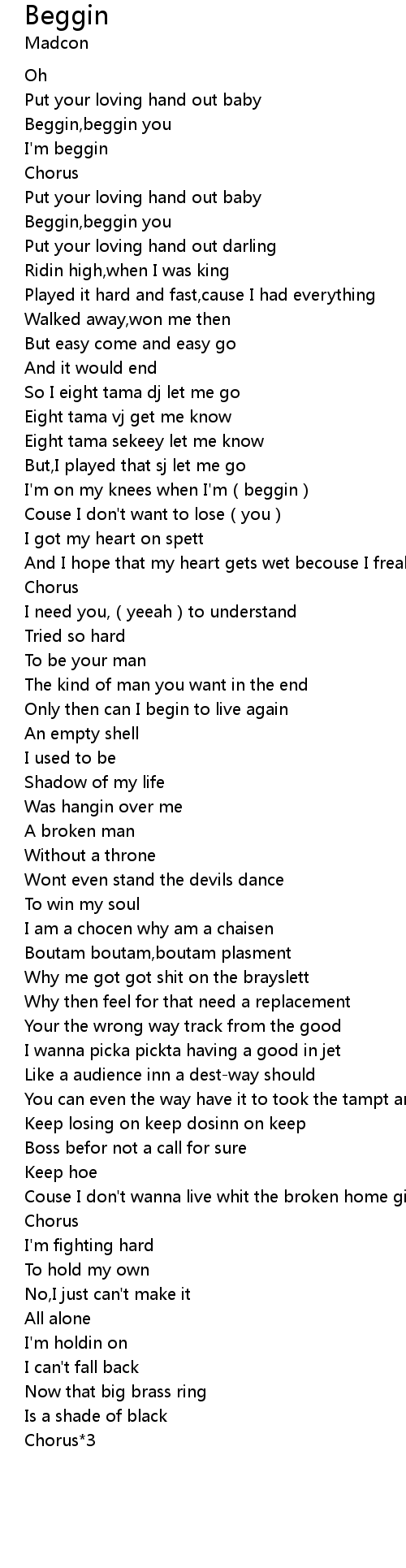 | [01:07.345] | I'm on my knees when I'm(beggin) |