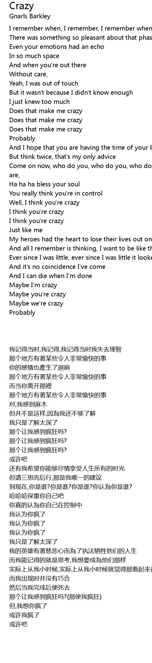 Crazy Lyrics
