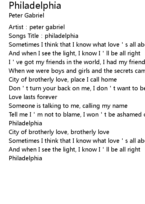 | Songs Title: philadelphia | |