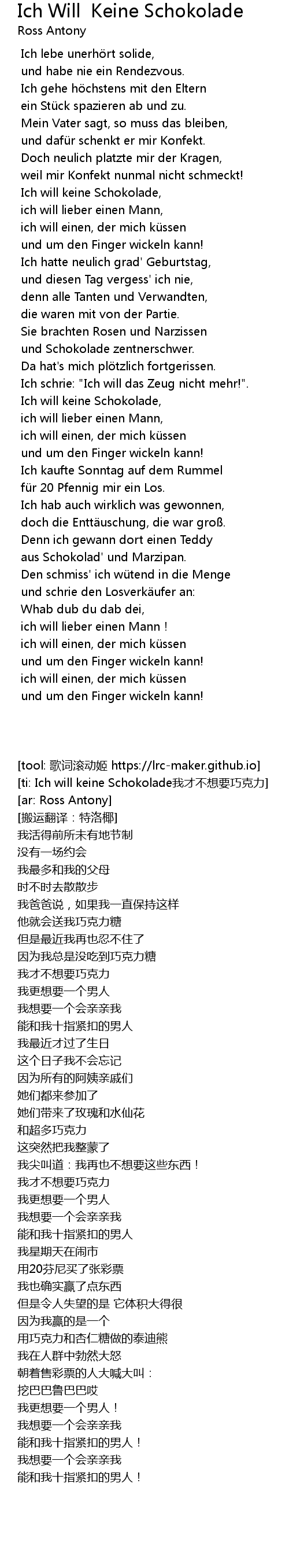 | [00:58.410] | und Schokolade zentnerschwer. |