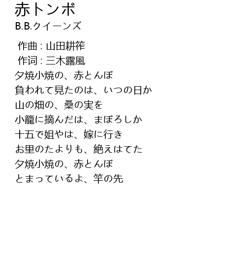 | [00:35.178] | 夕焼小焼の、赤とんぼ |