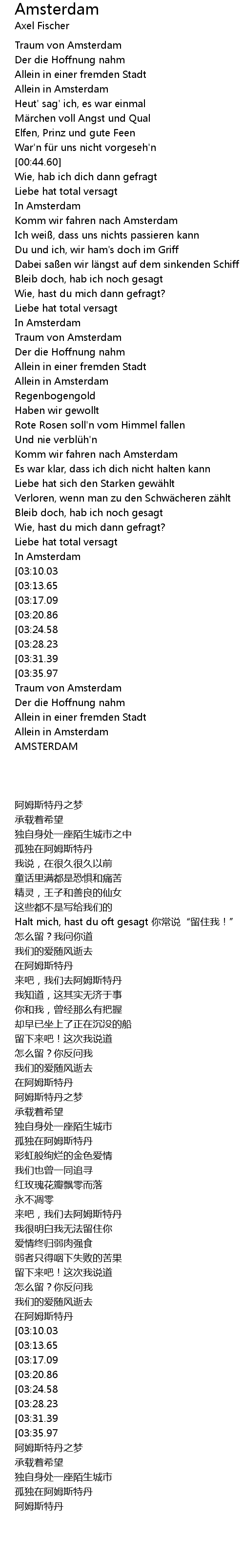 | [02:40.94][03:10.03] | Traum von Amsterdam |