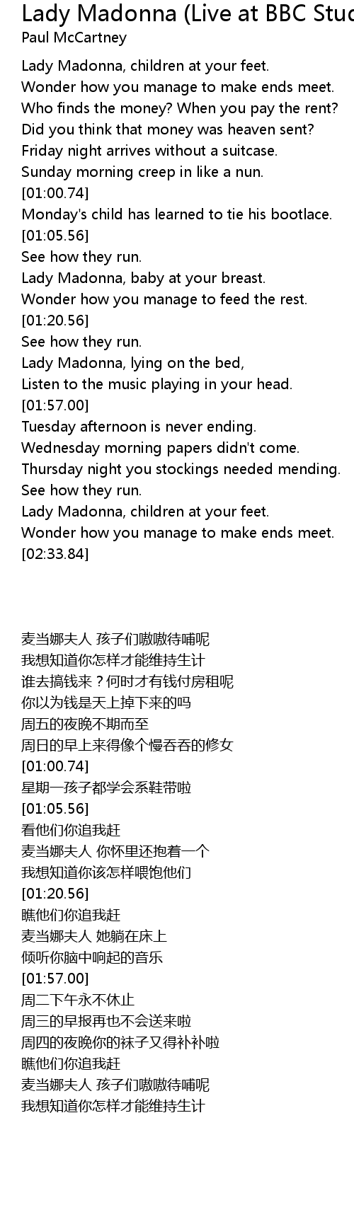 Lady Madonna, children at your feet. |